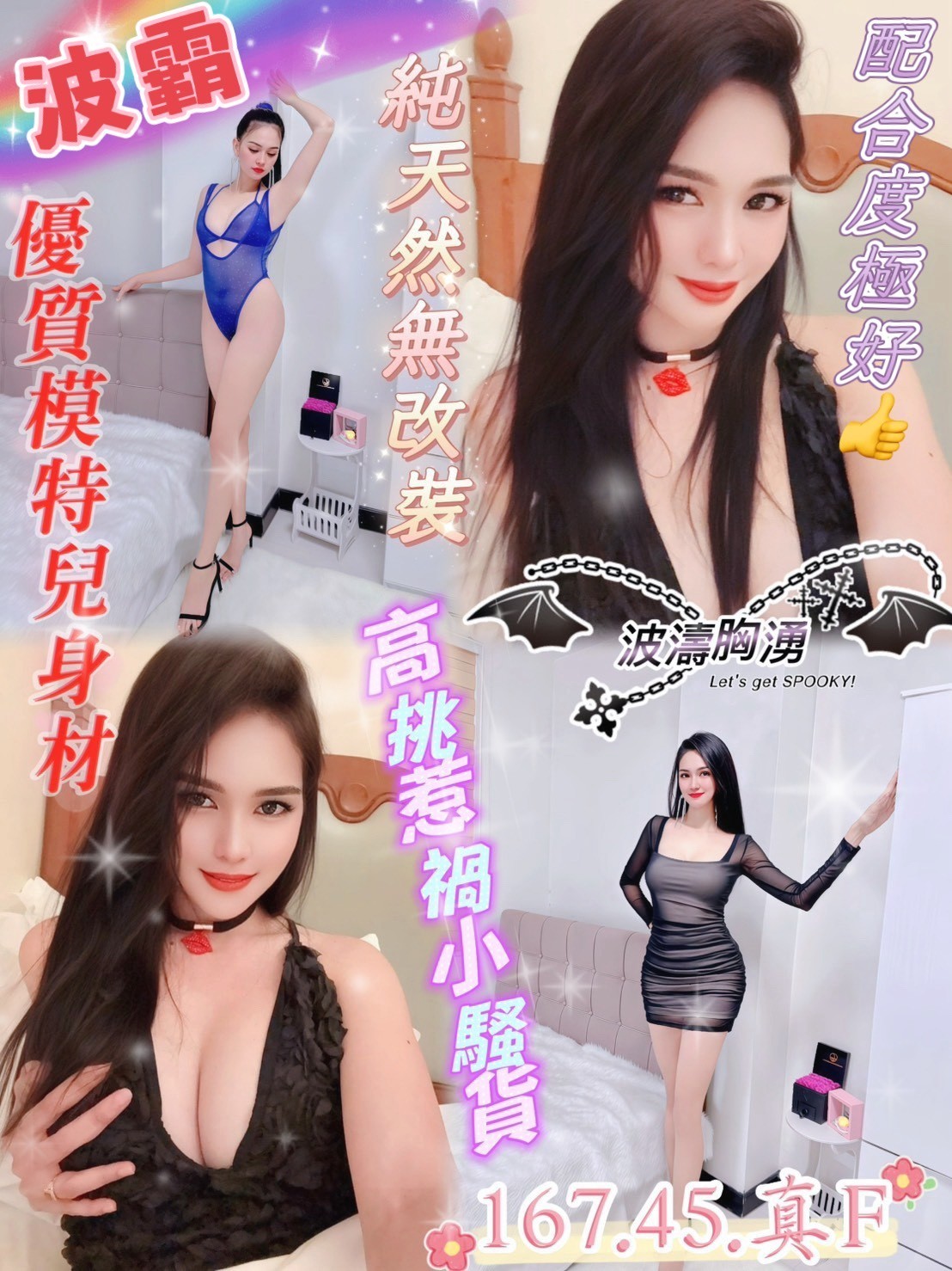 甜蜜共浴 舌吻(視衛生) 無套吹 小親親 品鮑 舔蛋/奶炮 胸推 按摩 可配合絲襪or變裝(需自備) 可配合角色扮演(需自備)