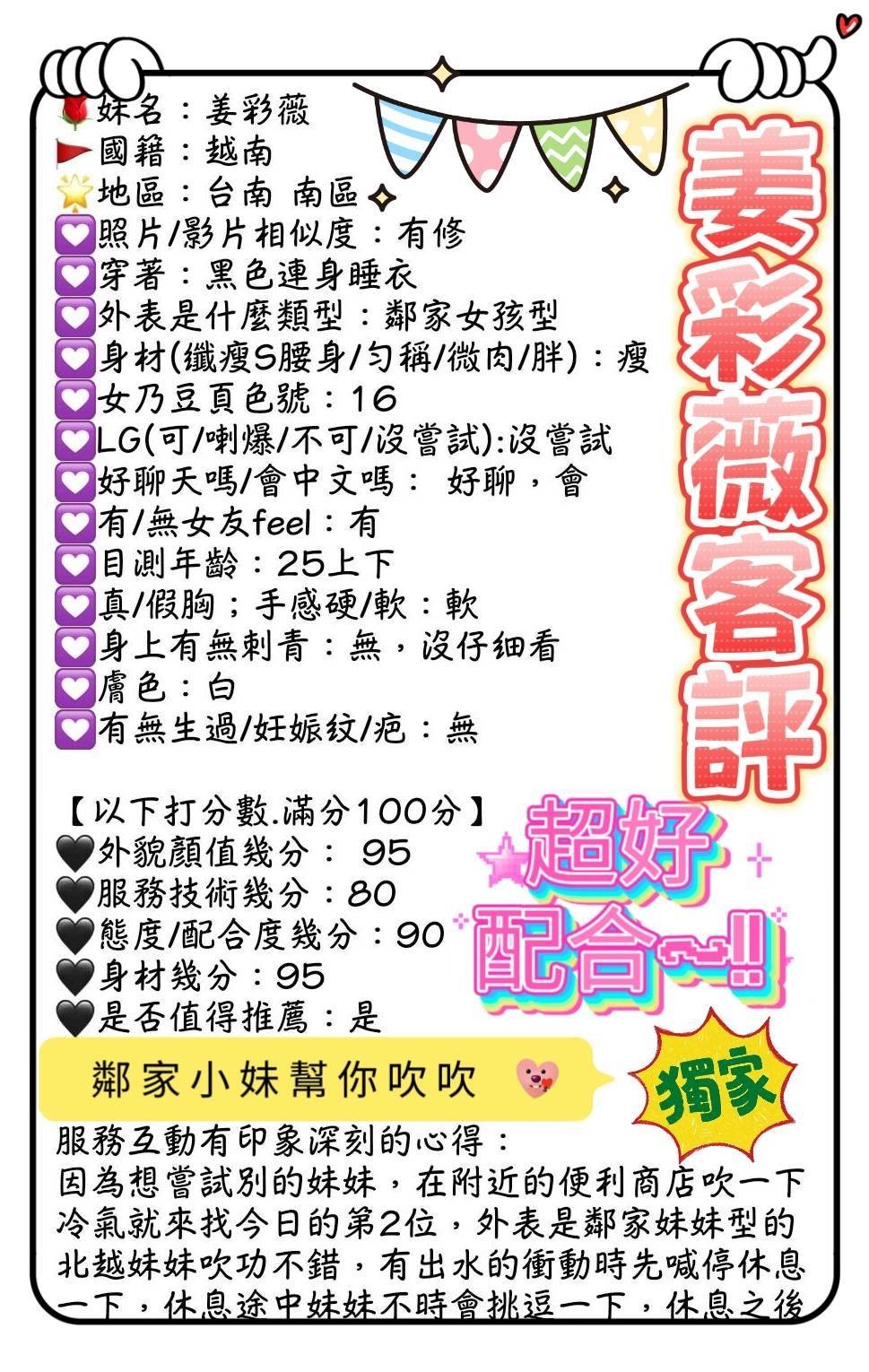 外表活潑互動非常好,很主動又健談    Review by 吳**