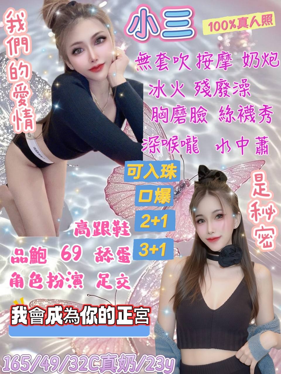 無套吹/奶泡/按摩/69/親嘴/舔蛋/冰火/殘廢澡/高跟鞋/絲襪/胸膜臉/深喉嚨/水中蕭/🉑️舌吻/🉑️口爆/🉑️角色扮演/🉑️足交/🉑️情趣用品/🉑️自衛秀/🉑️無套/🉑️雙飛